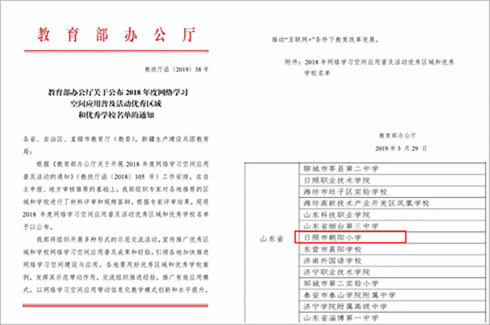 在2年的使用过程中,2018年日照市朝阳小学被教育部表彰为