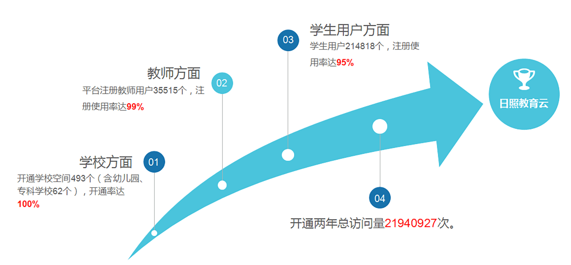 (2)日照区域教育信息化模式因为自身结构的优良、技术的精湛、使用方便快捷等,在很好地服务日照区域的教育业务的同时,还非常有利于进行高质量的教育援疆等教育扶贫,响应国家号召。